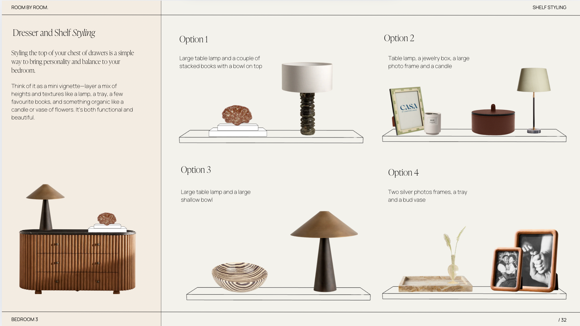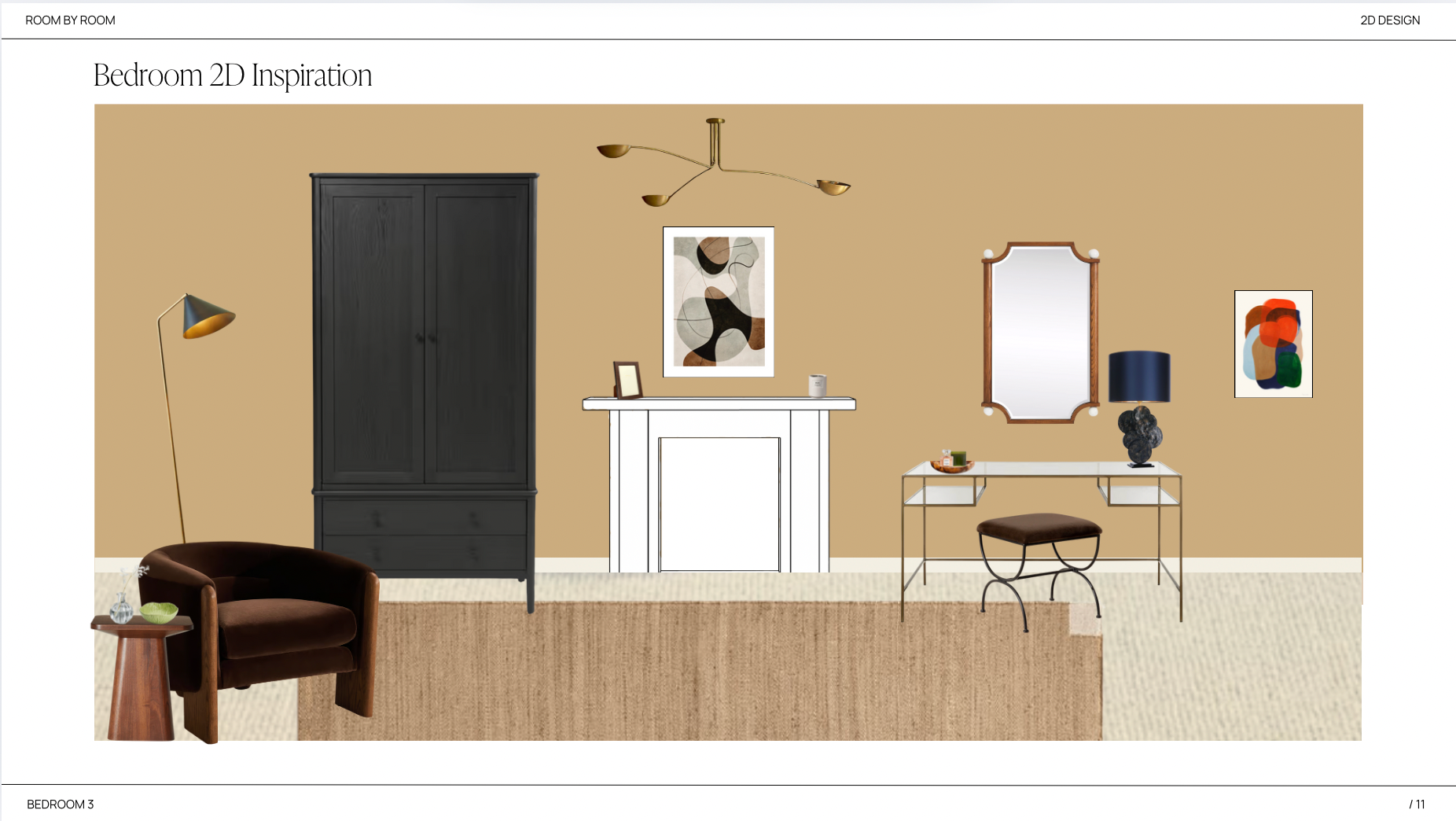 This room is for those who love their interiors to be rich, warm and with a bit of a mid-century modern feel. For people who like their homes to be eclectic and a little bit quirky. The colour palette is warm and rich, with rich mustard hues, greens and mahogany tones. We've selected beautiful pieces from amazing brands and makers to style your bed, bedside tables, dressing tables and shelves.. They help create an interesting, layered and cool space with lots of personality. The aim is to create a room which totally envelops and which you want to retreat to and unwind at the end of the day.